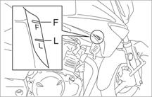 3.通過發(fā)動機(jī)副水箱上的標(biāo)記“F”和“L” 來檢查發(fā)動機(jī)冷卻液的液位。